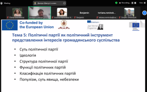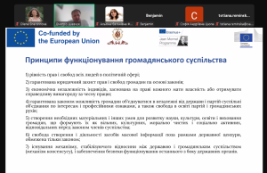 “Course participants will have the opportunity to develop a deep understanding of the principles of civil society and its role in the development of democracy. They will gain practical skills in implementing their own initiatives and effectively interacting with government agencies, public organizations, and the media. The course will provide them with tools for analytical assessment of social processes and the implementation of democratic approaches in their professional activities. As a result of the training, participants will increase their competitiveness in the labor market and will be able to develop their careers in public administration, the public sector, journalism, or analytics,” said Tetiana Sydoruk, Doctor of Political Science, Professor, Head of the Department of International Relations.